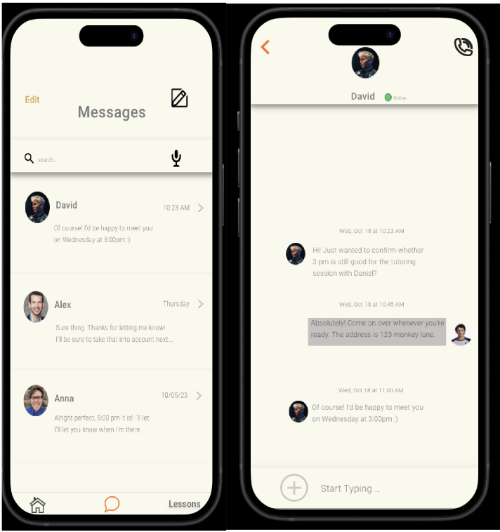 The lessons tab shows upcoming and completed tutors, you can check their profiles & read their reviews as well as check the confirmation of the booking with a chance to edit it.