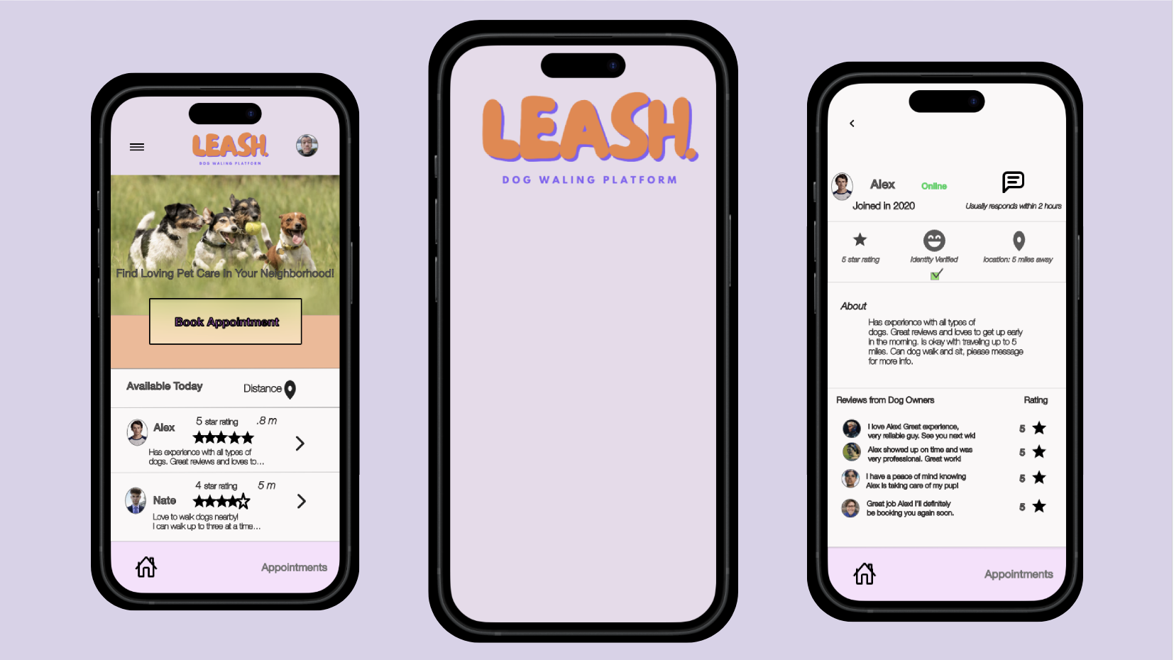 For adaptive design, and since Leash’s target audience views the functions of the app from different platforms, I created a tablet/website version and a mobile version.